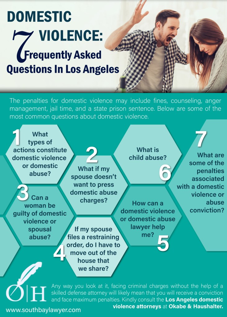 The penalties for domestic violence may include fines, counseling, anger management, jail time, and a state prison sentence. Any way you look at it, facing criminal charges without the help of a skilled defense attorney will likely mean that you will receive a conviction and face maximum penalties. Kindly consult the Los Angeles domestic violence attorneys at Okabe & Haushalter.
